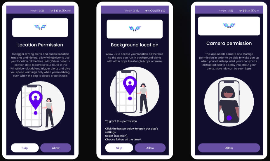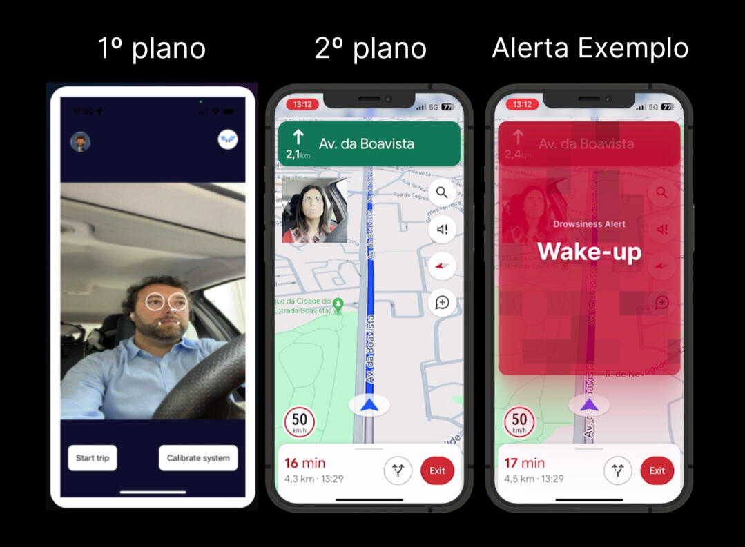 1. Sempre que for conduzir, abra a app WingDriver. Pode optar por ver a app em primeiro ou segundo plano. Ex: utilizar o google maps e ter a WingDriver app atrás.2. Estando a app aberta, pode escolher carregar no botão "Iniciar" mas não é obrigatório. - A app irá assiti-lo automaticamente assim que detecta velocidades acima de 15 km/h.3. A App irá emitir sinais sonoros e visuais quando detetar sinais de sonolência, fadiga, e/ou distração.